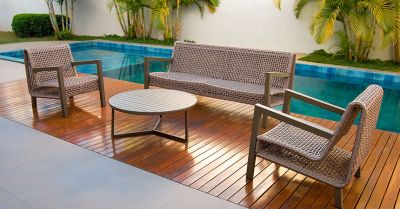 Além da estrutura em alumínio, a Alumax utiliza acabamentos de alto desempenho que complementam essa durabilidade. A fibra sintética, por exemplo, é reconhecida por resistir ao sol intenso sem desbotar, preservando sua textura e aparência original. A corda náutica, quando aplicada nessas peças, adiciona toque contemporâneo e conforto visual, além de oferecer grande resistência. Já a tela sling garante firmeza e ventilação, ideal para quem deseja praticidade e leveza no mobiliário. A união desses materiais cria conjuntos capazes de enfrentar o uso diário sem perder qualidade, garantindo que o investimento permaneça satisfatório a longo prazo.